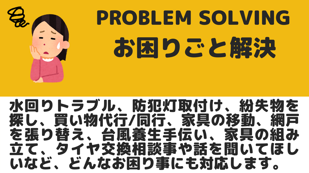 日常生活で不安や悩み、困りごとに対してすぐにご対応いたします。