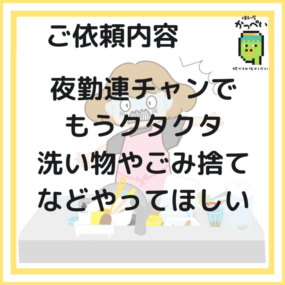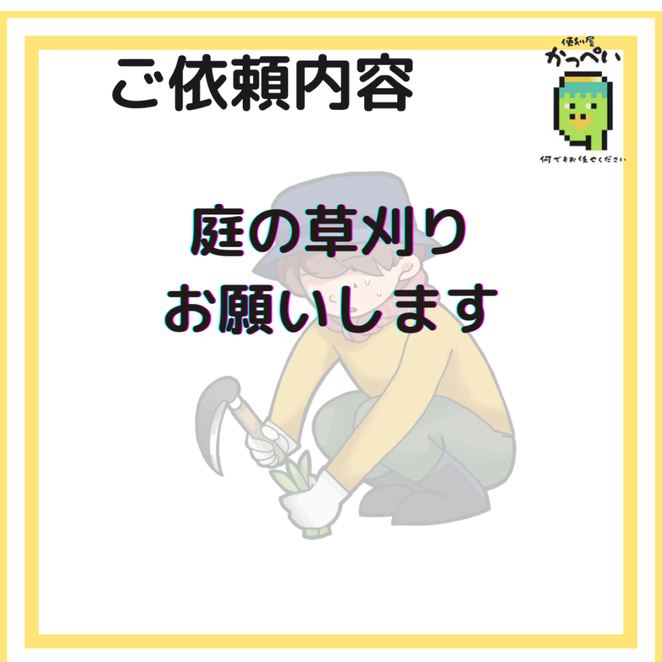 お仕事事例2023.06.062022.10.02このページでは直近や過去のお仕事の記録を一部ご覧いただけます。最新の投稿はインスタグラムやティックトック、youtubeで随時更新しております。 目次過去のお仕事内容一部ご紹介2022年12月スタッドレスタイヤ交換ハンドルカバー取り付け灯油購入代行お庭の剪定、草刈り2022年11月草刈のご依頼2022年10月台所の洗い物代行大量の靴下仕分けペット用クッション洗濯、乾燥過去のお仕事内容一部ご紹介2022年12月スタッドレスタイヤ交換ハンドルカバー取り付け灯油購入代行お庭の剪定、草刈り2022年11月草刈のご依頼 2022年10月台所の洗い物代行大量の靴下仕分けペット用クッション洗濯、乾燥
